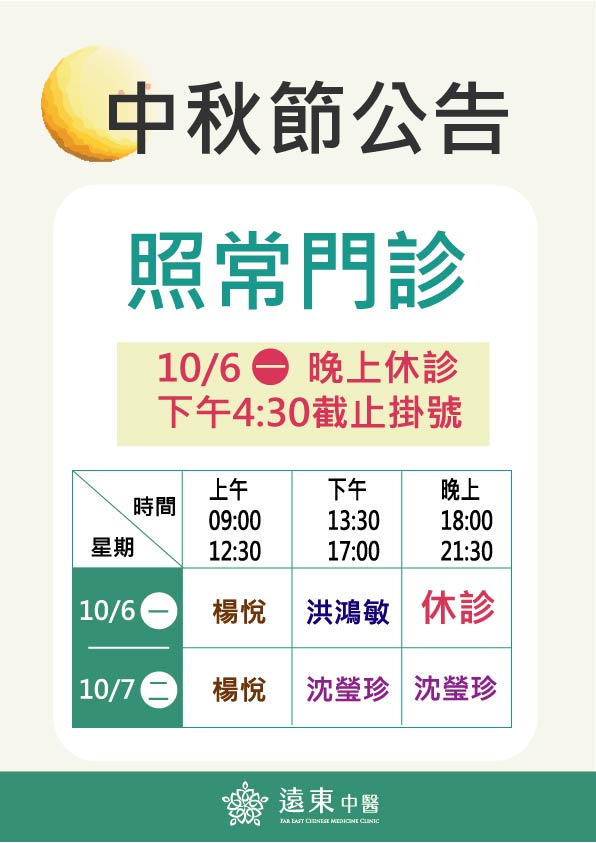 歡迎使用遠東中醫APP,請多利用線上掛號,請於預約時間提早5分鐘至櫃台完成報到手續。